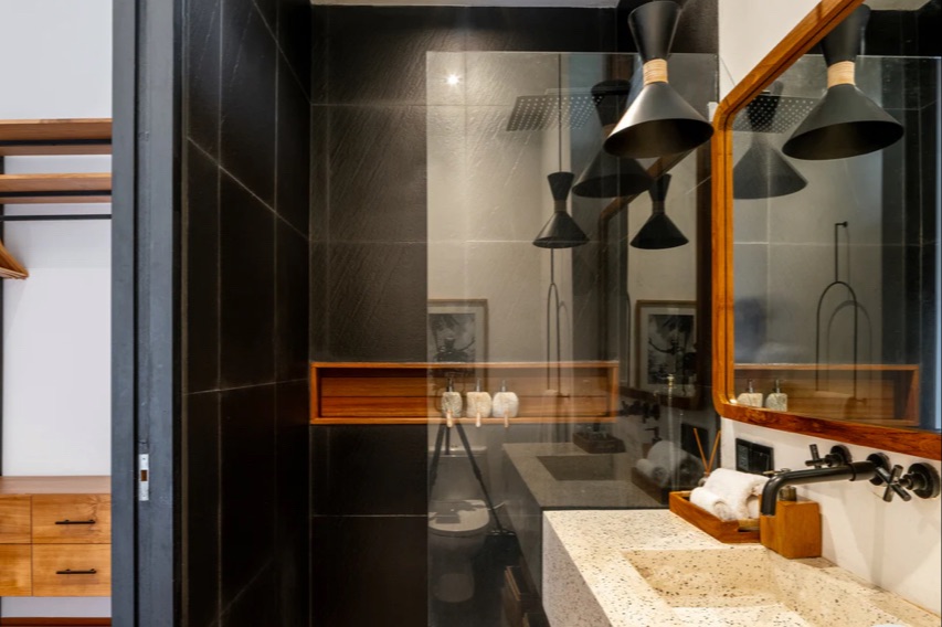 ☽☾ Private bathroom with waterfall shower, vanity & hairdryer (no bathtub)